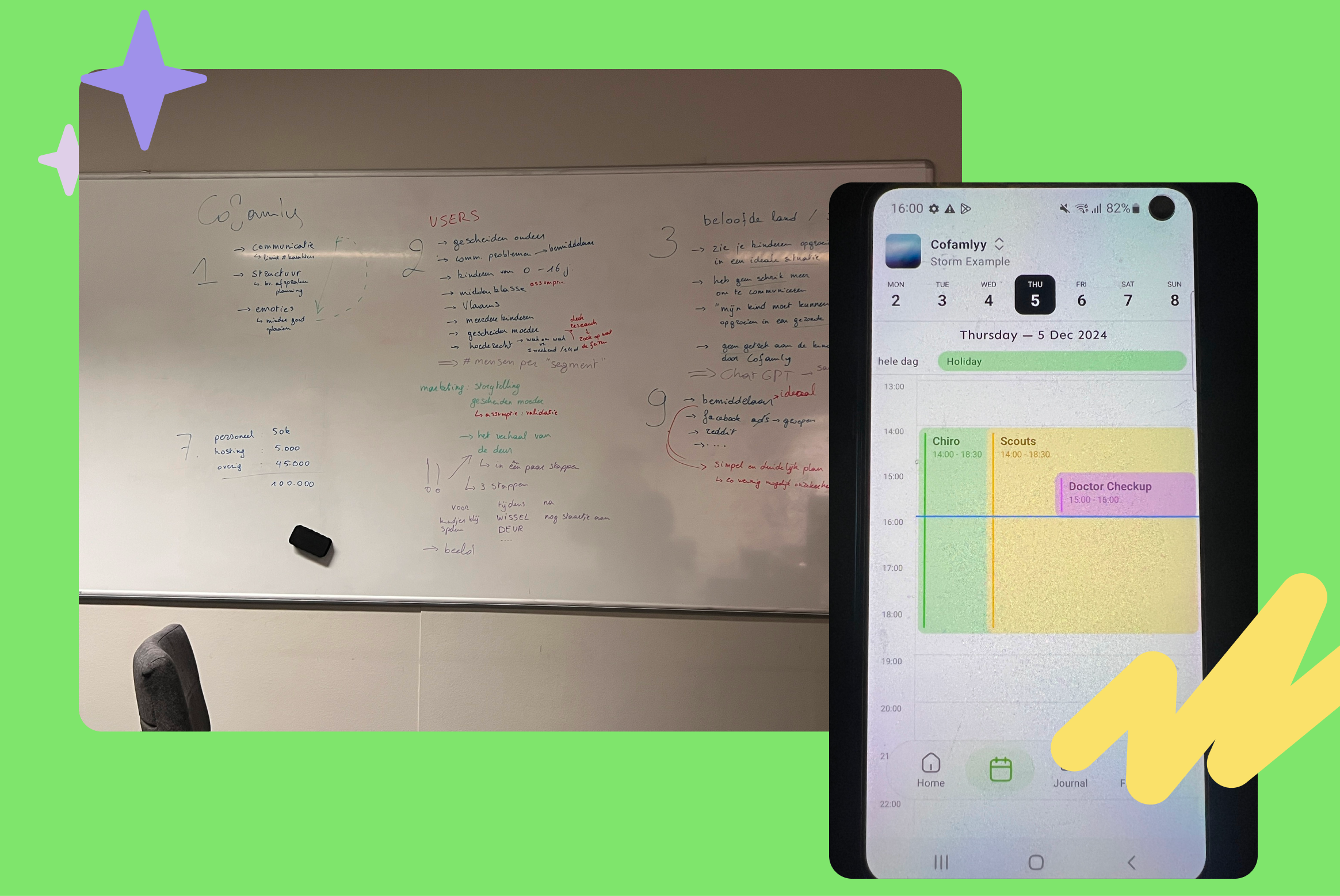 The beginning of everything. What started as an observation quickly grew into a mission. After countless brainstorming sessions on the back of napkins and late nights behind the whiteboard, the idea of Cofamly began to take shape. We dived deep into the complexities of co-parenting and saw a clear need for a solution that brings peace.