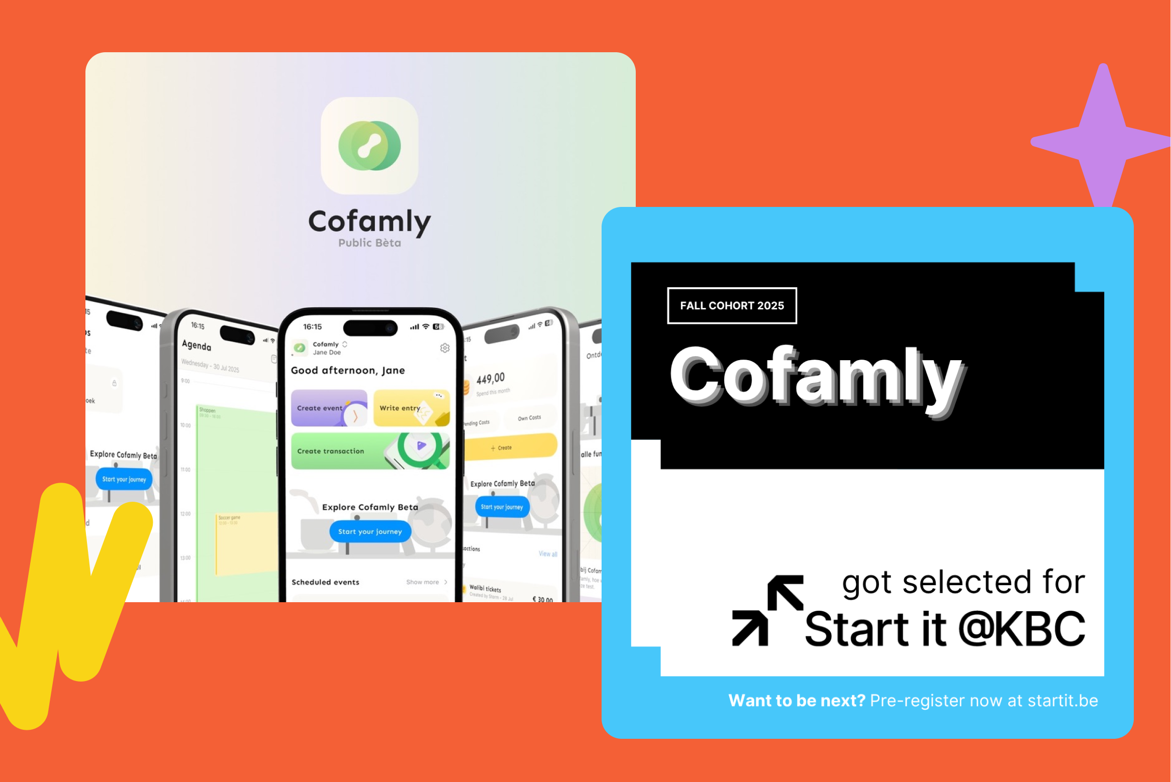 Recognition from the experts: we have been accepted into StartIT @ KBC! This accelerator program offers us the support, mentorship, and network we need to take Cofamly to the next level. An exciting new phase is beginning.