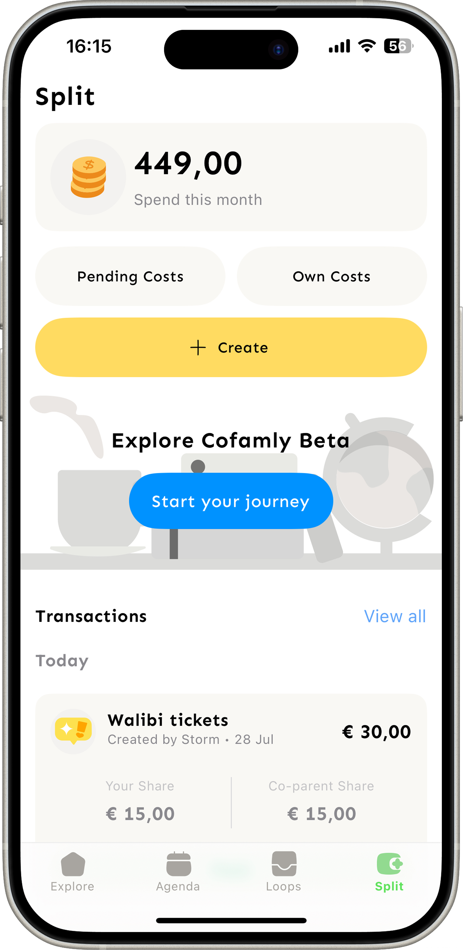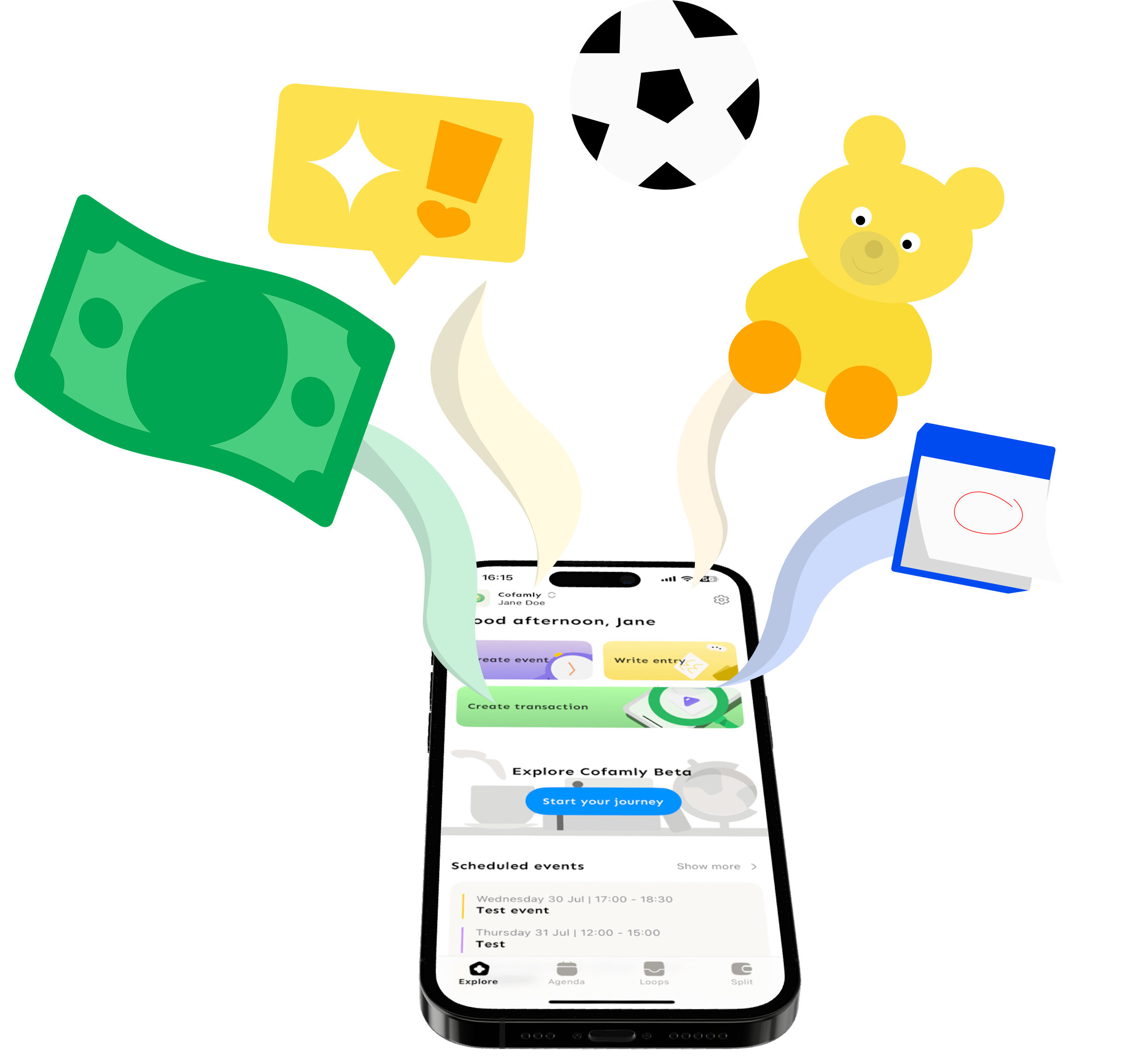 Wat is een Cofamly? Ouders die samenwerken zonder gedoe. Gebruik de app om praktische zaken als wissels en kosten slim te regelen, en geef je kind het beste van twee werelden.